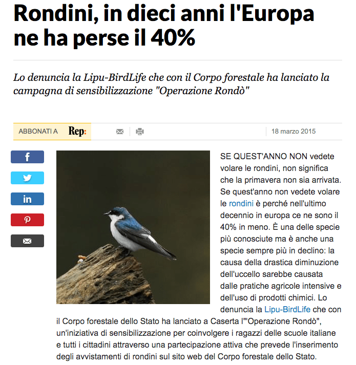 Coincidenza vuole che Una rondine non fa primavera è, oltre ad una riflessione di Aristotele in merito all’etica, il nome un progetto di citizen scienze nato su Facebook che chiede agli iscritti di partecipare condividendo contenuti sulla pagina.